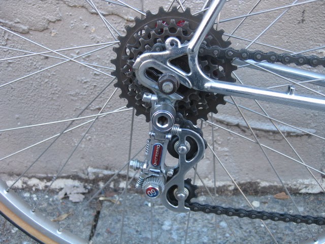 I compare this bike at first glance to a Saluki, not the Rivendell bike, the dog. Very elegant and svelte. The second thing I like is that all the components are from smaller British parts maker at the time. The British Hub Co. Airlite hubs, Williams crank set, Benelux derailleurs and shifters, Mansfield saddle, GB Coureur 66′ brakes, GB Superhood brake levers with hoods, and GB Maes bars. This is before Raleigh bought everything and is a nice example of what was available at the time from smaller firms doing their thing. So the overall picture is the last gasp of sorts of smaller British frame building and components. Enjoy!