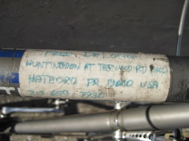 Add to that the fact that this particular bike once belonged to Fred De Long, and you have an interesting story. Fred De long was the Technical Editor of American Cycling, American Bicyclist, and Bicycling magazines. He was also the vice-president of the League of American Wheelmen (LAW). He was a professional engineer who had a life long love affair with the technical, as well as the recreational side of the sport. He was a technical consultant and project coordinator for the service and repair manual of the Bicycle Manufacturers of America. Fred De Long also resided in Hatboro, PA., not far from Philadelphia. He is deceased, but his legacy lives on. He wrote a very popular book that was published in 1974 titled De Long’s GUIDE TO BICYLES & BICYCLING. It covers all aspects of the sport, from racing to touring, set up, and maintenance. All in a very user friendly format. When I was first learning about bikes, this was the book i read along side THE CUSTOM BICYCLE.
