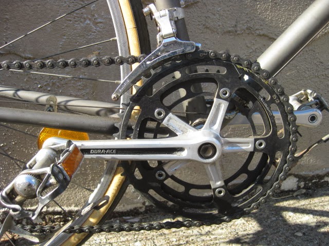 This is a pretty interesting bike, in my opinion. The frame and fork were produced by Teledyne Linair Co. in Gardena CA. Fewer than 2000 Teledyne Titans were made from 1973-1976. These were among the first production titanium bikes made, along side Flema (Germany) and Speedwell (U.K.). These bikes really ushered in a new age of American “super bike”. We take for granted that titanium is so widely used now in the cycling industry in both frame construction as well as components. Well, this bike is an example of the root of that modern technology and deserves to be acknowledged.