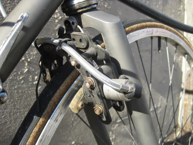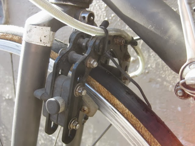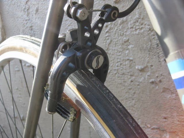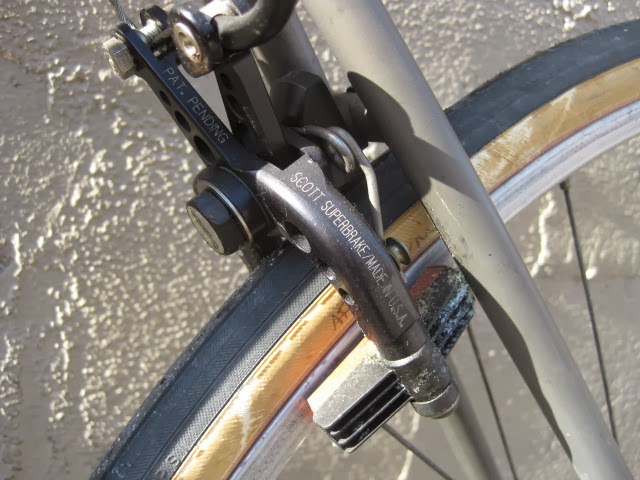 The bike has some interesting components. The front brake is an early Mathhauser hydraulic brake. The rear brake is a Scott Super Brake, both unique early designs. The bike is also equipped with a mixture of early Dura Ace components. The rear wheel has an early Phil Wood hub with tied and soldered spokes for a more rigid wheel and the front wheel is a Campagnolo low flange record hub with crow’s foot lacing. A long cage rear derailleur with a more touring spread freewheel is a bit puzzling in conjunction with the more “racey” wheels. I wonder what Mr. De Long was thinking when equipping this bike? Was he experimenting with these new components? I am sure there was a good reason as he was always looking for new and innovative ideas. It is humbling to work around and investigate his bikes. I have a lot of respect for the work he did to further the sport that we love. Enjoy!