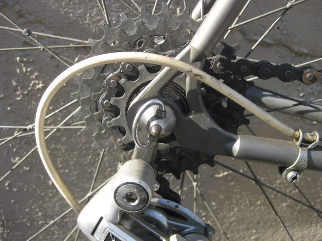 This is a pretty interesting bike, in my opinion. The frame and fork were produced by Teledyne Linair Co. in Gardena CA. Fewer than 2000 Teledyne Titans were made from 1973-1976. These were among the first production titanium bikes made, along side Flema (Germany) and Speedwell (U.K.). These bikes really ushered in a new age of American “super bike”. We take for granted that titanium is so widely used now in the cycling industry in both frame construction as well as components. Well, this bike is an example of the root of that modern technology and deserves to be acknowledged.