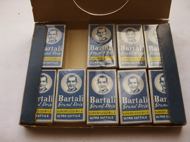 This is kind of a cool little item we came across the other day. Bartali branded razor blades from the 1940’s I believe. He was a true Italian champion of the pre war period having won the Giro D’Italia three times 1936, 1937, 1946. He also won the Tour De France twice, 1938 and 1948. It was not uncommon for cyclists to be associated with everyday items such as this. It made you feel as though you were a champion too! Also of note is the package design, very well laid out and appealing. I see that one package is missing, maybe someone needed a shave! Enjoy!