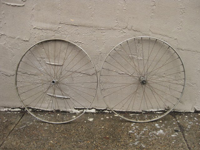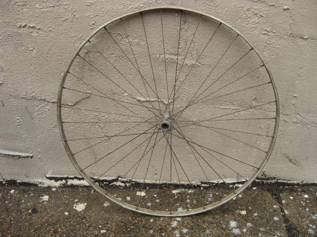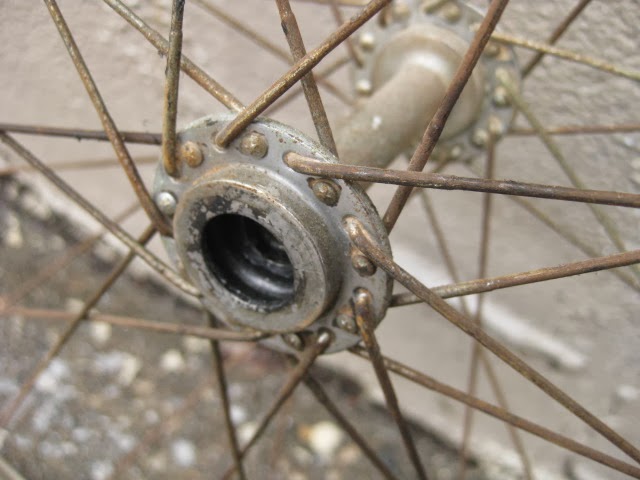 This is a rare opportunity to own a really cool wheel set from the 1940’s to finish your Italian pista project! Rear wheel has a couple flat spots as well, but could be sorted out by a skilled mechanic.