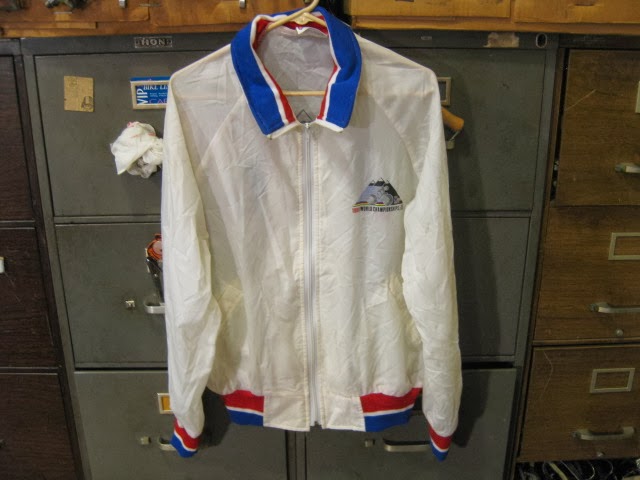 I don’t normally offer this kind of stuff on the blog, but this is a pretty cool item i don’t know where else to put. World Championship track jacket from 1986 in NOS, never really worn condition. Size adult large. pit to pit measures 24″. arm length from pit is about 21″. Collar to bottom of jacket measures 30″. Top quality zipper does its job!