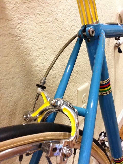 I like before and after sequences. Especially when they are bikes we have sold. You may remember this bike from a previous blog post of ours. It is a 1972 Colnago Super with heavy amounts of component drilling (drillium), that we sold in the summer of 2013. Well, the new owner was gracious enough to send some photos of his restoration of the bike. When this bike came in, I knew at right away it would clean up beautifully, a real diamond in the rough. I am glad it found a new home and has been brought back to its previous glory!