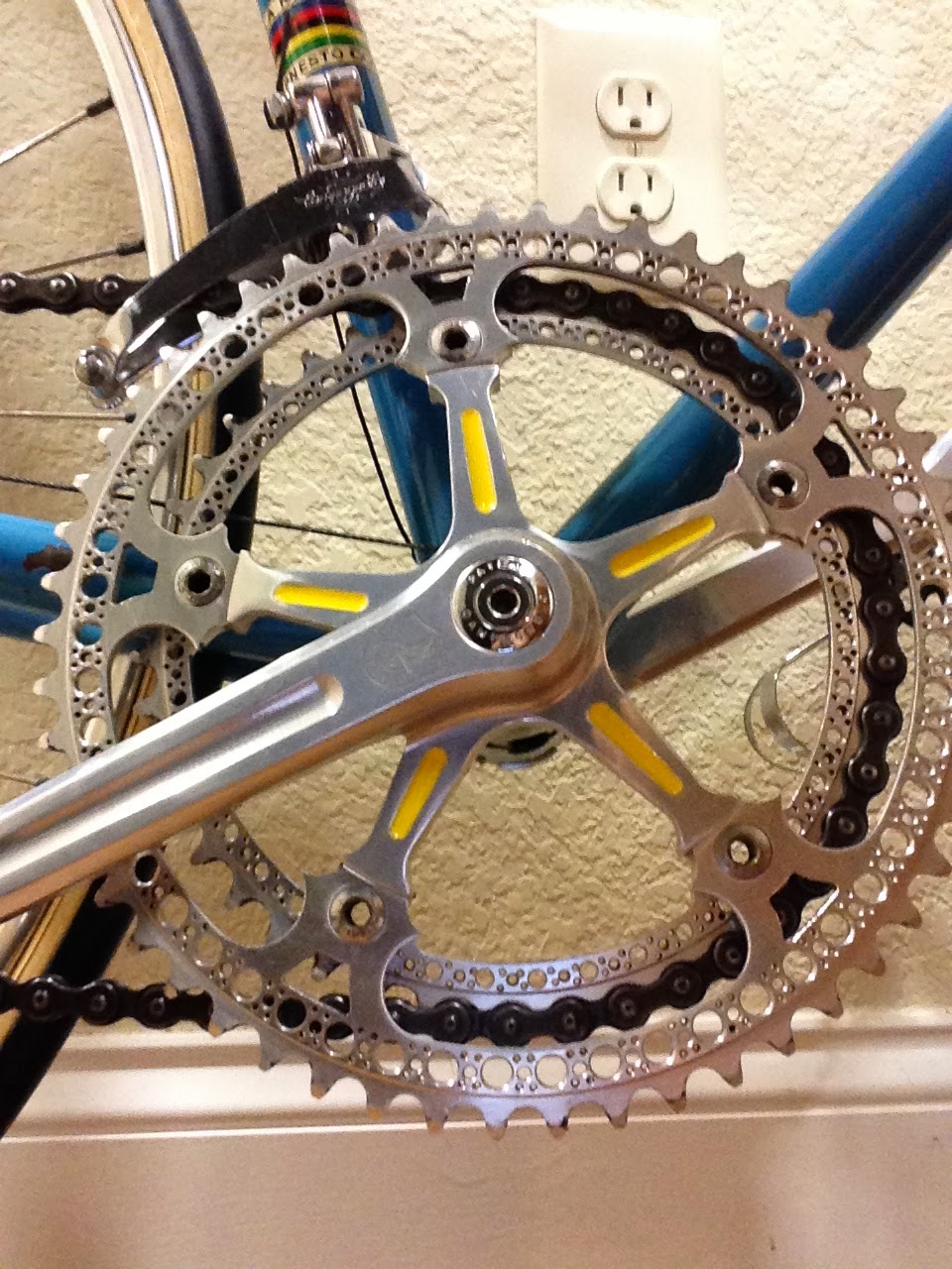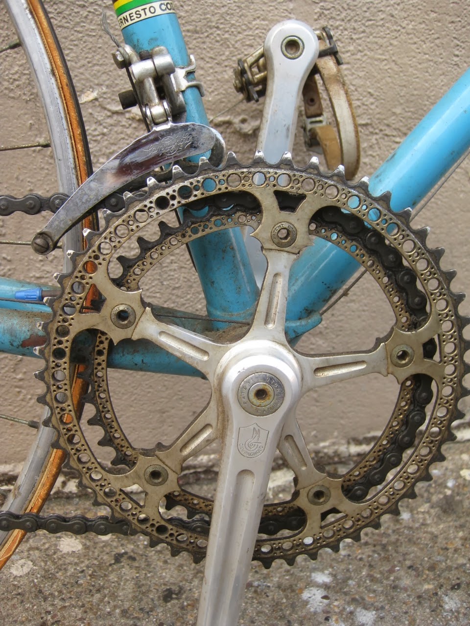 I like before and after sequences. Especially when they are bikes we have sold. You may remember this bike from a previous blog post of ours. It is a 1972 Colnago Super with heavy amounts of component drilling (drillium), that we sold in the summer of 2013. Well, the new owner was gracious enough to send some photos of his restoration of the bike. When this bike came in, I knew at right away it would clean up beautifully, a real diamond in the rough. I am glad it found a new home and has been brought back to its previous glory!