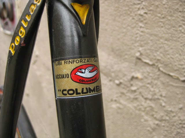 Here is another one of my personal bikes. It is a mid 1970’s Pogliaghi pista model. Here is a link to the Sante Pogliaghi section in the book The Custom Bicycle. link here! courtesy of Classic Rendezvous. I purchased it several years ago from the original owner, Scottie Hicks. He currently resides in the California Bay area and is a mechanic at The Missing Link. It was originally purchased from Hill cycle here in Philadelphia, new. Scott raced it at the Lehigh Valley Velodrome for an unknown number of years and then retired it as a training bike. He changed the fork to one that was drilled for a front brake, but provided the original fork when I bought it.
