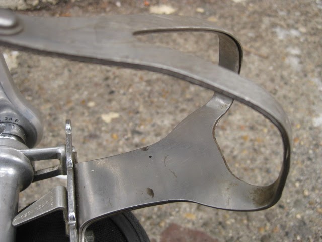 I have only made minimal changes to the set up. I changed the headset to a Campagnolo steel Pista model and the bars and stem to Cinelli model 18 steel pista bars and an older Cinelli steel badged stem. I also put new tubular tires on it. The rest of the componentry is a mixed bag of Nuovo Record and Super Record. Super Record pista cranks 170mm, Nuovo Record bottom bracket, Nuovo Record pista pedals with cyclo- cross toe clips and Alfredo Binda toe straps. Super Record seat post and Cinelli unicanitor wishbone rail saddle. Campagnolo low flange Nuovo Record pista hub set laced to NISI Moncalieri dark anodized rims. A Regina track chain rounds out the drive train.