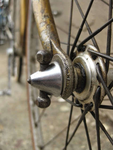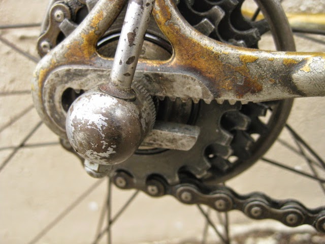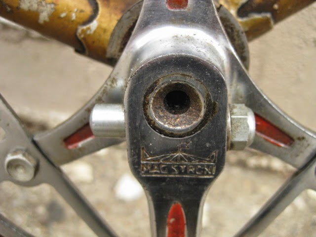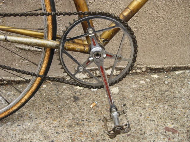 This bike has been mentioned in another blog posting here, but i figured it was time it got the full attention it deserves. It is an early Legnano frame and fork, serial number B05289 which puts its production in the 1940’s according to the Classic Rendezvous registry. The bike is equipped with Campagnolo’s Cambio Corsa gear system, one of the earlier production gear systems. Here is a link with the history of it. Here also is video demonstrating how to operate it.