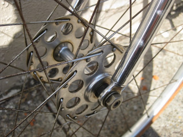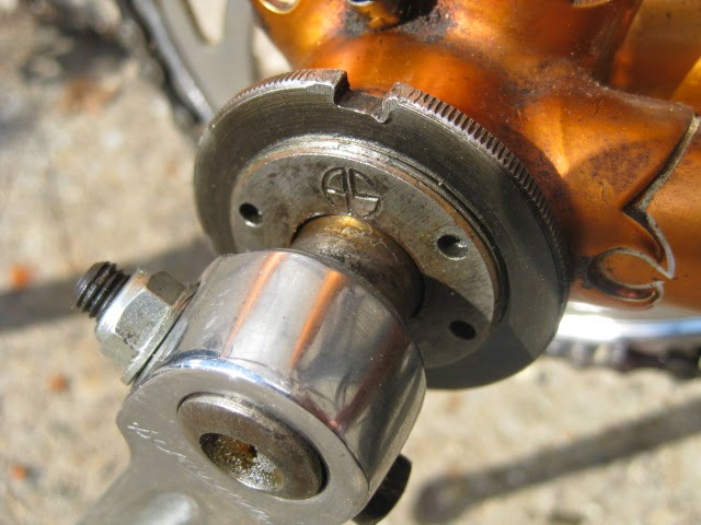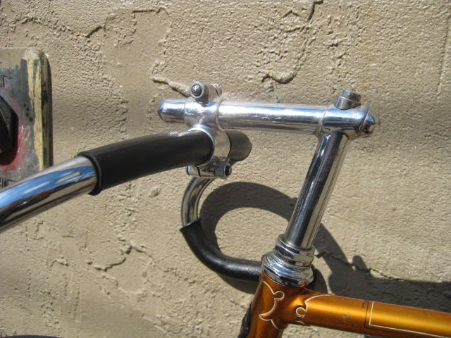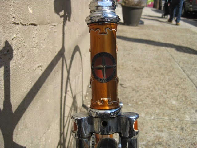 This is one of my favorite bikes the shop owns. it is a 1959 Schwinn Paramount track model. This bike is unique for a few reasons. It is somewhat of a transition bike. it has the Nervex Professional lugs which became very popular in the coming years ahead. Up to this point, Paramounts had the more iconic keyhole style lugs. It still has the older style fork crown too. The bike also has all the proprietary Schwinn Paramount components like the large flange “telephone dial” hubs, Paramount stamped cranks, adjustable track stem, “AS” stamped bottom bracket, Paramount chain tensioners, Schwinn racing grips (repop), and “AS” binder bolts all around. It also has the older decals. So, it kind of straddles two eras of production, making it stand out.