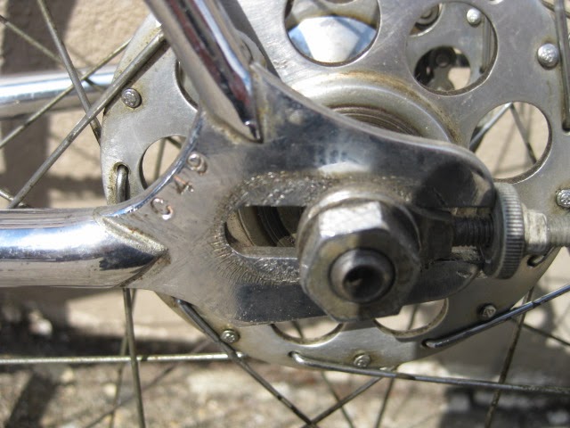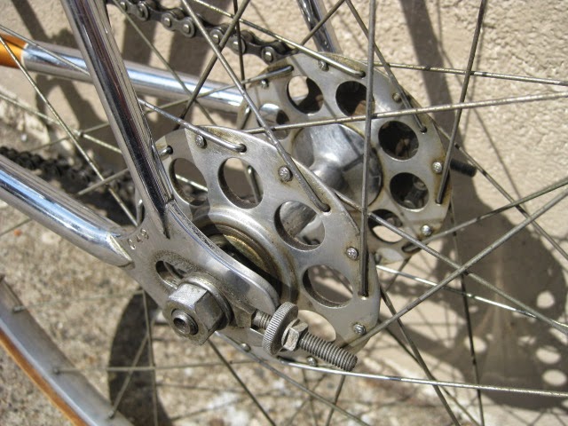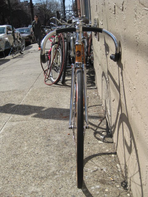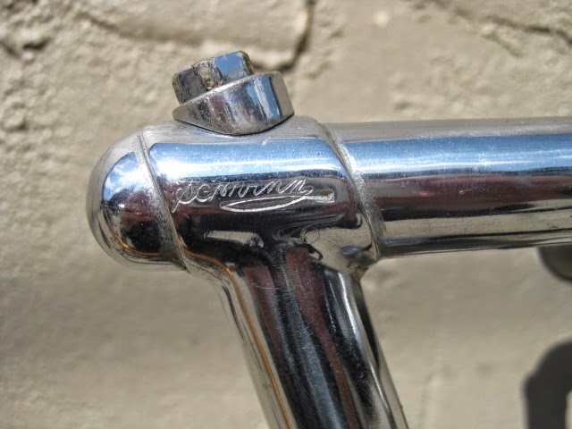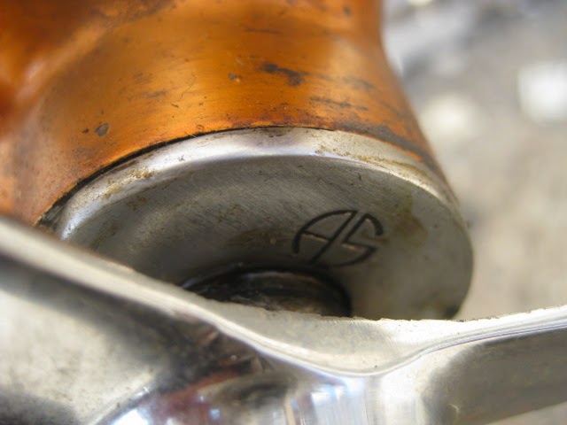This is one of my favorite bikes the shop owns. it is a 1959 Schwinn Paramount track model. This bike is unique for a few reasons. It is somewhat of a transition bike. it has the Nervex Professional lugs which became very popular in the coming years ahead. Up to this point, Paramounts had the more iconic keyhole style lugs. It still has the older style fork crown too. The bike also has all the proprietary Schwinn Paramount components like the large flange “telephone dial” hubs, Paramount stamped cranks, adjustable track stem, “AS” stamped bottom bracket, Paramount chain tensioners, Schwinn racing grips (repop), and “AS” binder bolts all around. It also has the older decals. So, it kind of straddles two eras of production, making it stand out.
