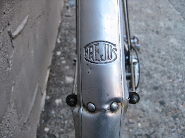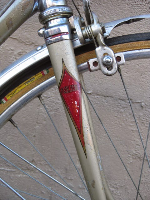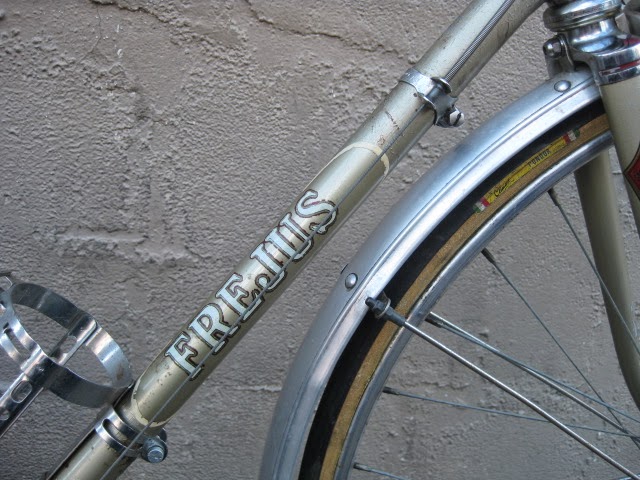 I really enjoy seeing what our customer’s bring in and this one is no different. Actually, it is a bit different because it is a bike I have always wanted for my collection. The bike is a Frejus road model and the owner dates it to about 1961. Frejus bikes were very popular in the USA from about 1945-1965. This one was imported to New York by a neighborhood shop in Stony Point, NY which was owned by the late Thomas Avenia. His shop became well known for importing Frejus and Legnano bikes. The top end models had a grease port on the back of the head tube and many classic Italian features. Some of which are the seat lug that utilizes a seat collar to tighten around the seat post and the simple and elegant head lugs as well as the semi sloping fork crown with slim cut out windows. This bike has all those features with the exception of the seat collar.