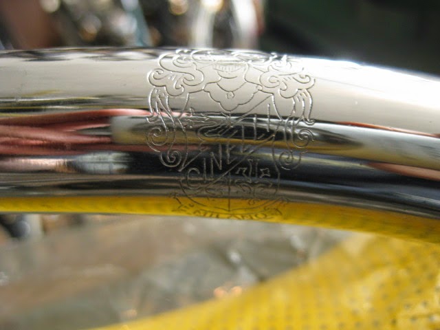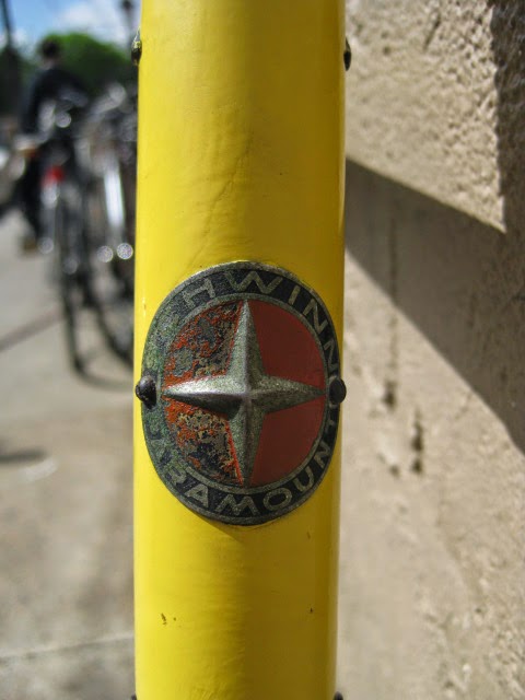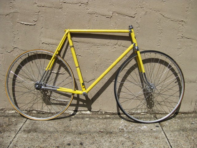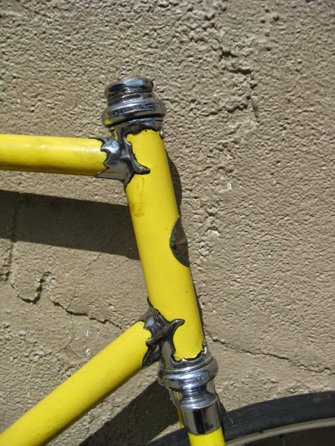 This is just a quick post to show some of the cooler items we have recently gotten in from our travels. There is a NOS set of Cinelli #14 pista bars, a NOS Schwinn Paramount stem, a Campagnolo Paramount drilled rear pista hubshell, a NOS San Marco Concor yellow perforated leather saddle, a handful of dura Ace 10 pitch items, and a nice 57CM Schwinn Paramount track bike from 1974. It has been re painted and the chrome is fantastic. Many more items as well, these are just the cream of the crop. Enjoy!