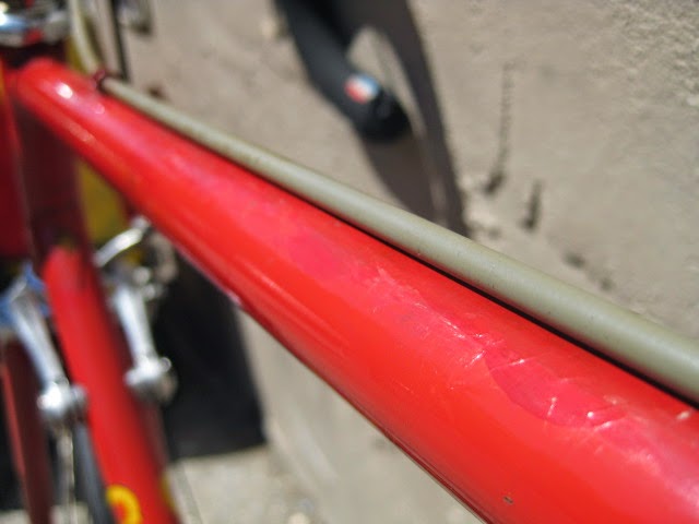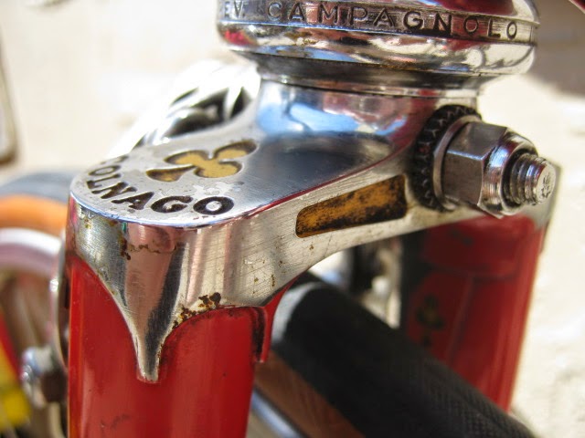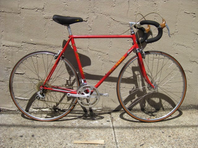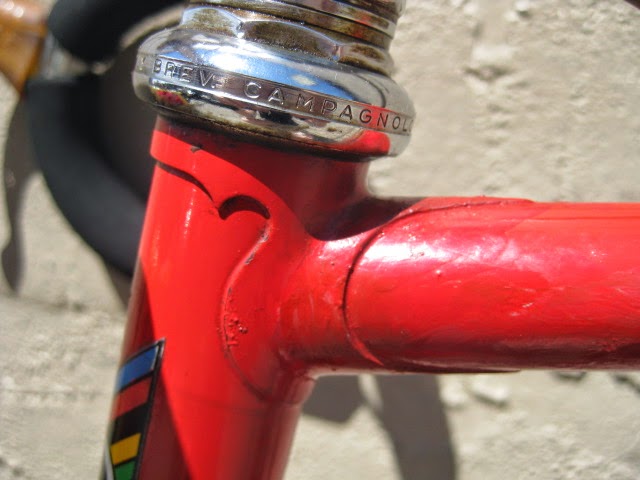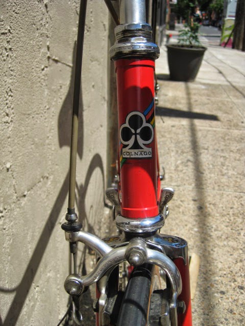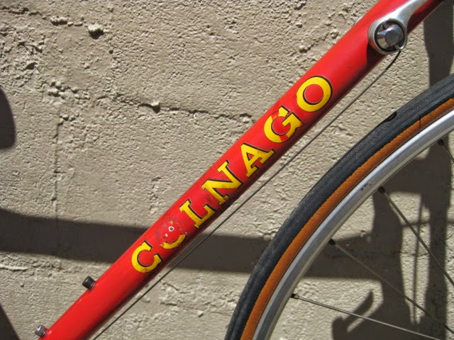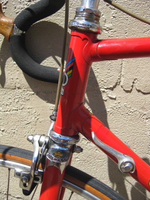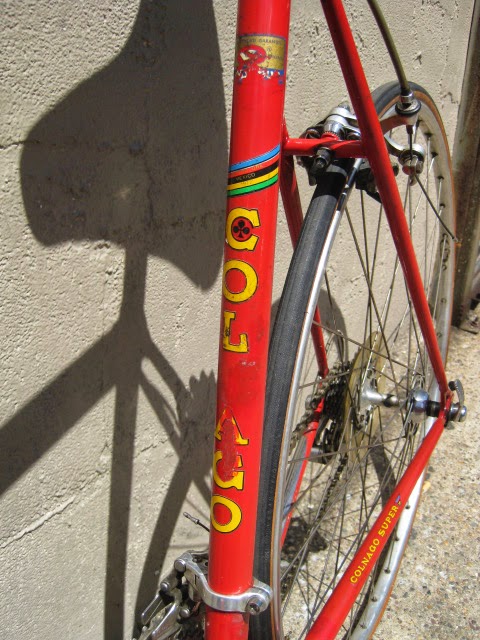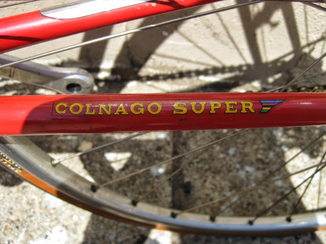 Here is part 2 of some recent bikes we got in. Early 1980’s Colnago Super in fantastic original condition. This bike was well maintained by the previous owner both mechanically and cosmetically. It has original paint and decals. Paint has been touched up in a couple different spots (mostly on top tube) and the down tube decals and seat tube decals are peeling in a spot of two (see photos). I also like that it is set up with more entry level components like the Shimano 600 shifters, and derailleurs, Suntour levers, SR seat post, and stem and bars. The rest of the components are Campagnolo Nuovo Record. It gives the impression of a classic Italian racing bike on a budget, Top shelf construction for the proletariat! Usually these bikes are all Campy, which is nice of course, but this bike is set up just the way the previous owner wanted it to be, and I am sure it performed flawlessly for him.
