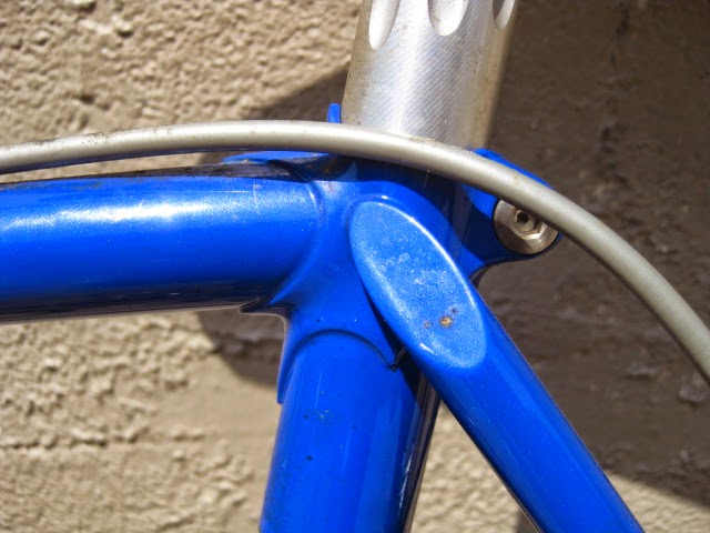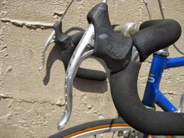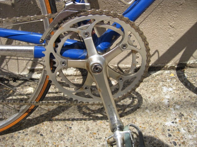Here is a really nice Schwinn Paramount from about 1985. The paint is thick on the underside of the bottom bracket shell where the serial number is, making it impossible to read unless I scratch it off. Which of course I am not gonna do! It is built with Columbus SLX tubing which was introduced in 1985 on Paramounts, so that kind of informs me on a ballpark of production. By the looks of the construction I would also guess it was built at Waterford, not overseas. Some of the details are nicer than the Asian built bikes. However, I AM NOT 100% SURE because the serial number is obscured. All that being said, it is a great entry level race bike. It is set up with reliable components and has been well maintained over the years.