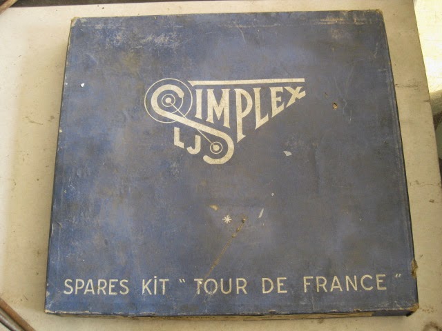 Simplex Tour de France spare parts kit. Amazing logo. 1950’s Tour is WAY different than 2014 Tour de France. Almost all the spare parts are steel. I wonder how much steel is on a modern Tour de France bike? Share this: Click to share on Facebook (Opens in new window) Facebook Click to share on X (Opens in new window) X Click to email a link to a friend (Opens in new window) Email Like Loading...