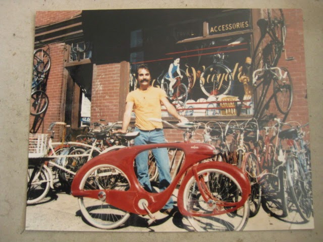 Here is a photo of Curtis out in front of the Lombard Street store. He looks like such a kid in this photo, not that he doesn’t still look great! That was the original location of the business in Philadelphia, between 13th and Broad street in the 1980’s. Yes, that is a REAL Bowden Spacelander in his hands. Very rare bike!