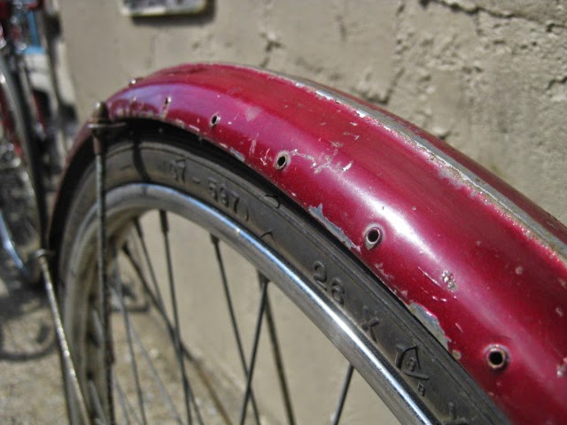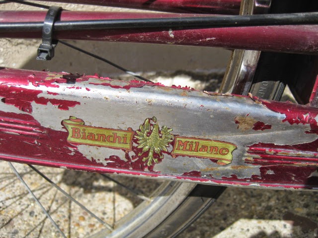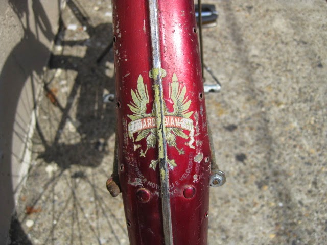 This Bianchi city bike rolled in last week. Really nice city set up with great features. My favorite detail is the chromed portion of the down tube so that when you step through the frame to get on the bike, you don’t scratch the paint there. Nice full chain case and the rear fender is perforated to accept a skirt guard. original Bianchi fenders, very sturdy. Sturmey Archer AW 3 speed hub dated 1971. Wheels appear to be original to the bike, so that kind of dates it. This bike has seen many miles and it shows. Great burgundy paint with all the original decals. I hope it stays in service for many more years. Share this: Click to share on Facebook (Opens in new window) Facebook Click to share on X (Opens in new window) X Click to email a link to a friend (Opens in new window) Email Like Loading...