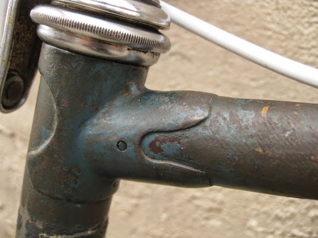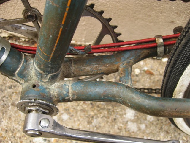 This is a bike a that a customer recently brought in to have us put together for him. It was half assembled and missing some parts. Our superb Mechanic David was able to complete the bike and make all the necessary adjustments. He set up the 3 speed Cyclo (British) rear derailleur and shifter. We supplied the rare cable and housing. It functions well. The owner said the bike is from the 1930’s- 1940’s. We determined it was French in origin. There are no makers marks anywhere. It did have a French steerer diameter as well as a host of other obstacles that we were able to sort out with minimal headache. It is set up with a mix of old and new, which is what the owner specified. We hope he enjoys it!