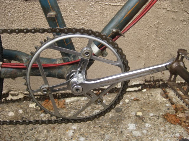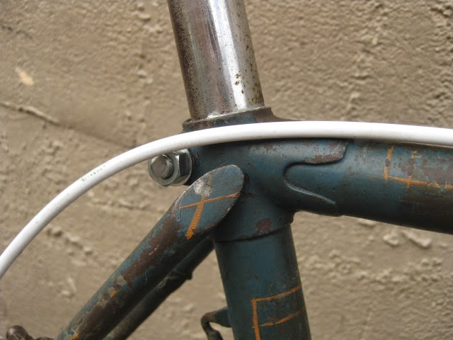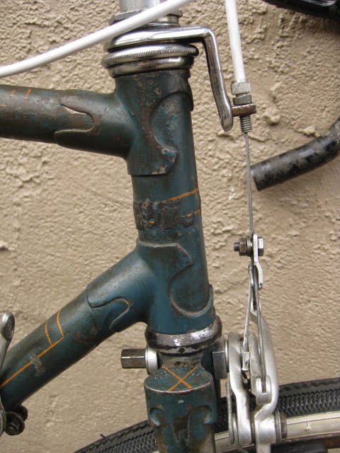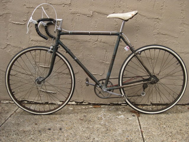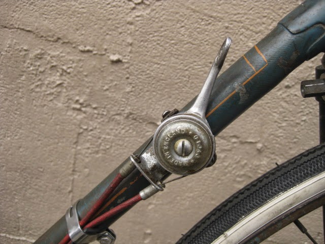 This is a bike a that a customer recently brought in to have us put together for him. It was half assembled and missing some parts. Our superb Mechanic David was able to complete the bike and make all the necessary adjustments. He set up the 3 speed Cyclo (British) rear derailleur and shifter. We supplied the rare cable and housing. It functions well. The owner said the bike is from the 1930’s- 1940’s. We determined it was French in origin. There are no makers marks anywhere. It did have a French steerer diameter as well as a host of other obstacles that we were able to sort out with minimal headache. It is set up with a mix of old and new, which is what the owner specified. We hope he enjoys it!