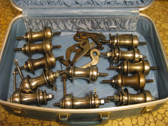 Here is a suitcase full of New Departure Model 1A hubs that our mechanic Phil recently found all the parts for, overhauled and cleaned up beautifully. With our season drawing to a close we now have the time to complete these types of projects. Email for pricing at: bikeville@gmail.com
