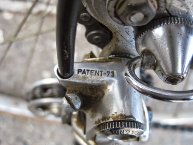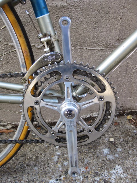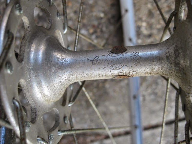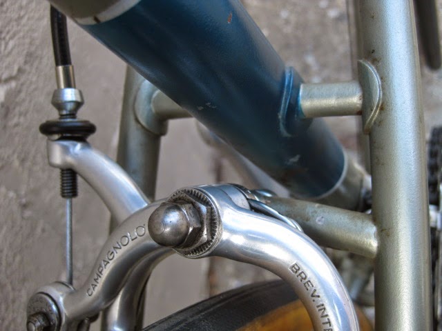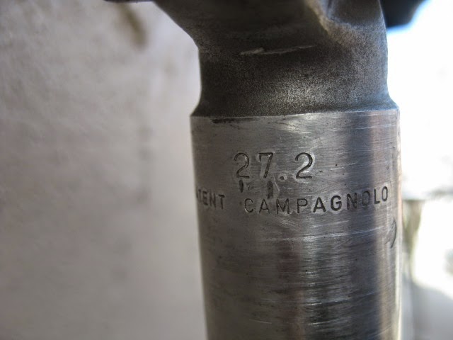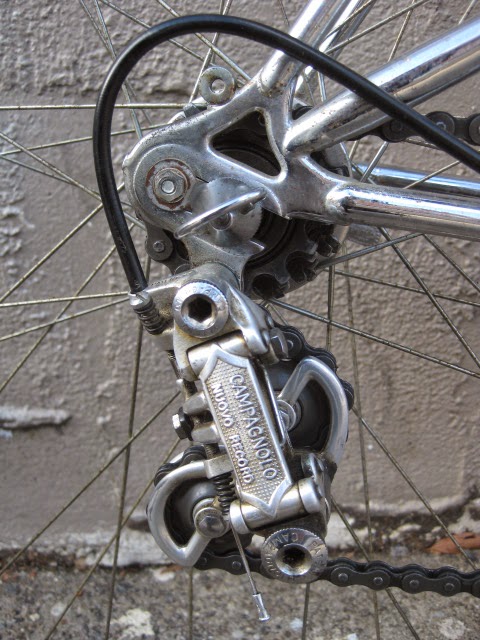This Bike has been changed a bit from when we first got it. It originally had a lot of aftermarket alloy bits and pieces for the Campagnolo rear derailleurs, pedals, and stem, etc. I switched those components out and replaced them with standard Campagnolo Nuovo Record parts. The measurements are as follows:
