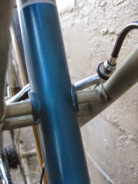 I had mentioned this bike in a previous post, but here it is with adequate photos and description. This is the only mixte frame I have ever seen by Cuevas. Francesco Cuevas is originally from Spain, but came to the USA in the 1960’s. He set up shop in Astoria, NY and built frames in the old world style, meaning using brass brazing over the newer silver that was available. He also built bikes by eye, no jig. A detail I personally really like. He retired back to Barcelona Spain with his wife and daughter. His son Andres continues the tradition in Ridgefield Park, NJ. Here he is building a bike by eye. Photo courtesy of classic Rendezvous.