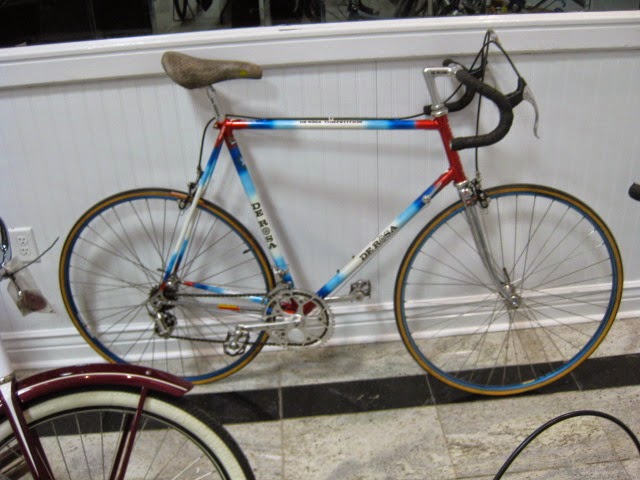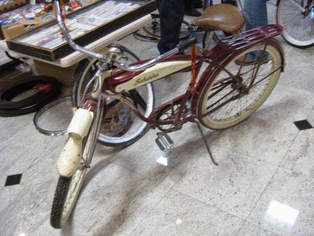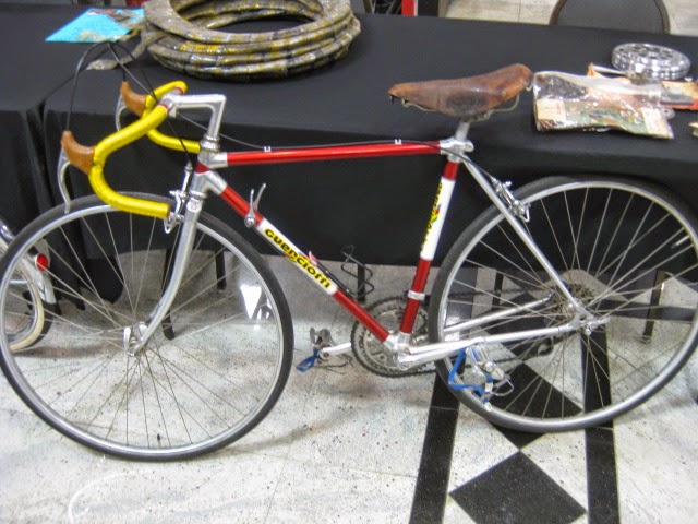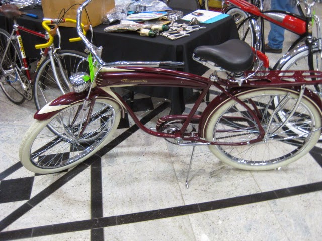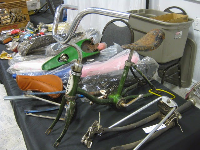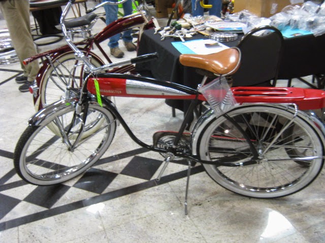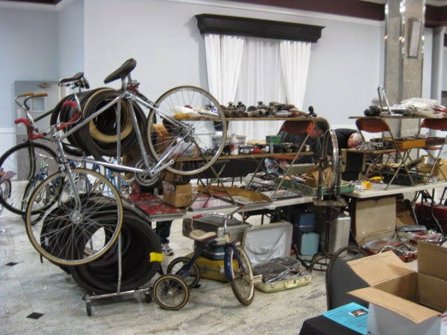 We attended the Butler, PA swap meet this past weekend put on by Rapp’s Cycle center and organized by Jeff. This was the 25th anniversary of the show. It was well attended as practically all the vendor spaces were occupied. We showed up saturday night and set up our wares. There was a bunch of buying and selling among the vendors, which is always fun and you get to see what everyone has. This is the first show of the season and is a good indicaton for the shows to come for 2015. This show is nice because everything is contained in the Days Inn. There is an indoor pool , great for relaxing after carrying around a lot of steel bikes! There is also an attached bar and restaurant, again, a nice break and an opportunity for socialization before it is time for business. This is a good family friendly show, if your signifigant others are not feeling the bikes they can go for a swim or relax in the hotel room and watch TV or whatever. WAY better than sleeping in a field!