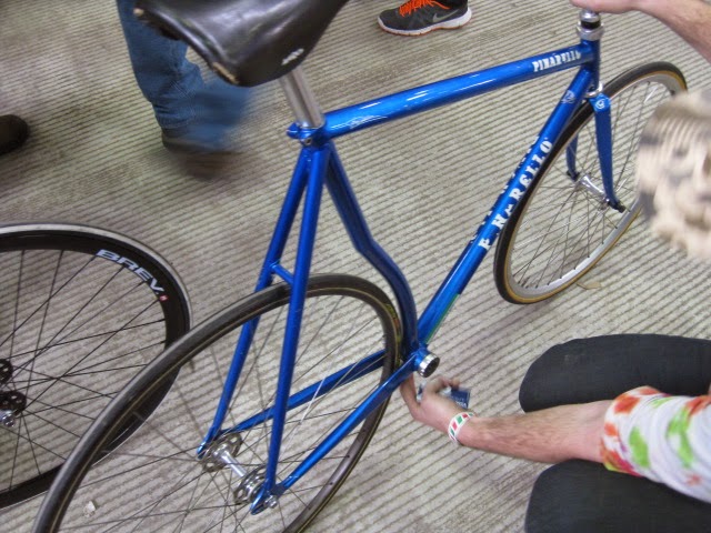 Giuncadelli pista. Note one piece bar stem combo and Gnutti splined BB spindle and cranks.