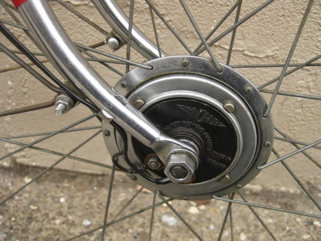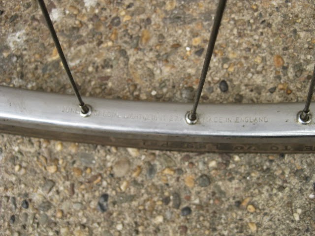 - Dunlop 27 X 1 1/4 special lightweight rims laced to unknown rear British hub and front SA Dyno hub (works).