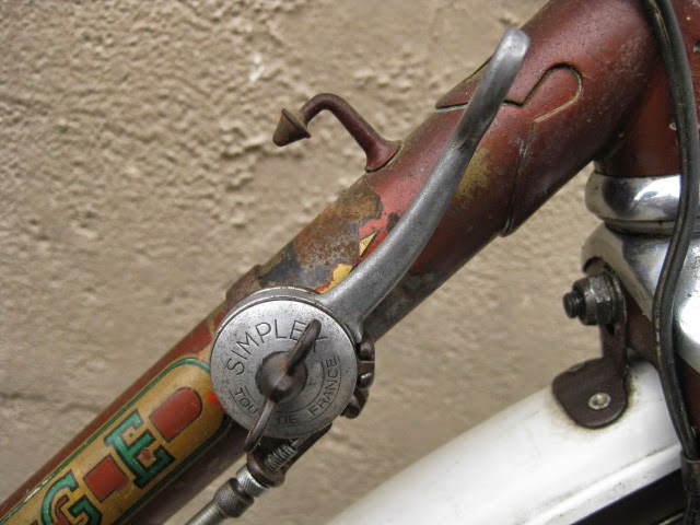 - Simplex front rod operated derailleur, works, but requires a fair amount of trimming to avoid chain rub.