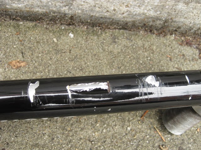Some scratches in paint on the underside of the top tube, looks like it was on a car rack, no dents.