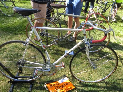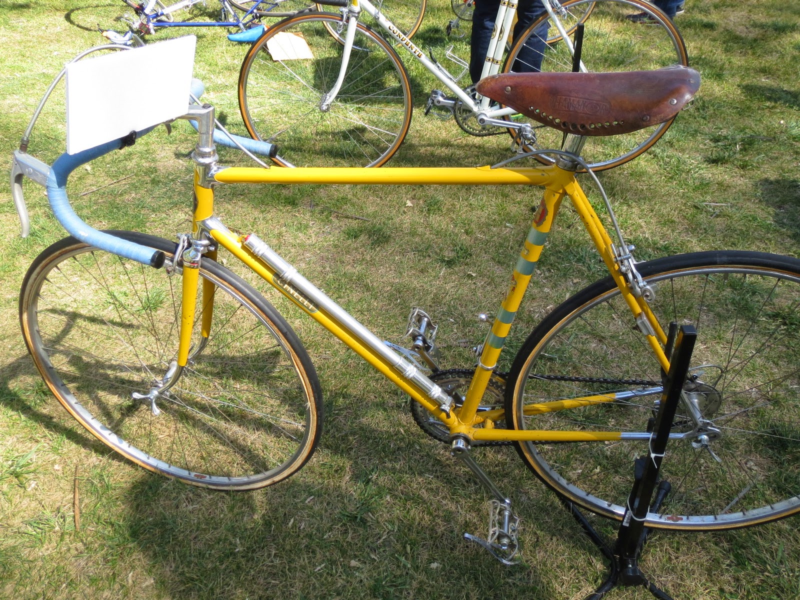 Somebody at L'Eroica Britannia took a photo of a 1975 paramount I bought from you guys a few years back (as a rusty blue frame). Unfortunately at this point the tires didn't match. International touring through England and Belgium on FMB tubulars was appropriately anachronistic but also a mix of fun and headaches.