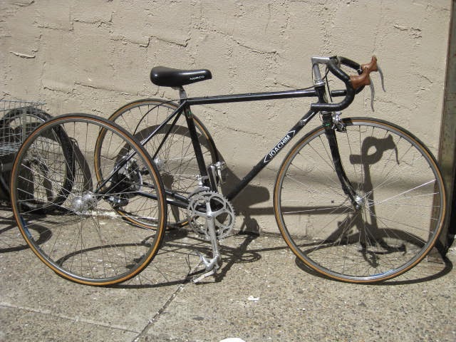This racing tricycle came back from the midwest swaps over the weekend. Nice lightweight competition machine. Head tube has what looks like a “J” “H” “A” cycles decal and Joachim down tube decal. Unfamiliar with the marque. Built with Reynolds 531 tubing throughout and mostly Shimano 600 components. Here are the measurements.