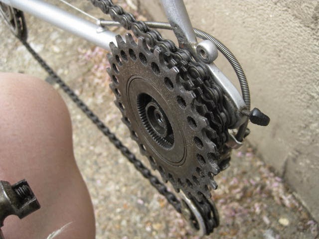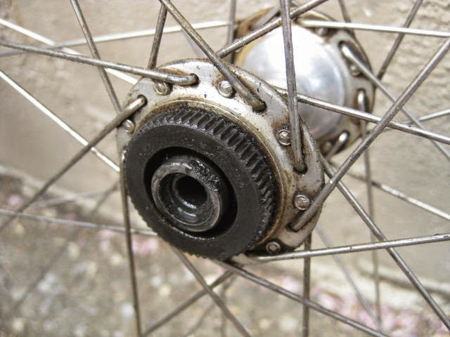It has the proprietary Cinelli Bivalent hub system, very unique! Here is an article about it: Cinelli Bivalent hub article via Classic Rendezvous. The wheels are interchangeable front to back. The outer hub flange has a splined ring the coincides with a splined Regina freewheel body. The freewheel stays attached to the frame via specific frame fittings and a through bolt quick release secures everything together. they were introduced in 1961-62 and were a steel barrell and alloy flanges and were later switched to an all alloy hub shell, which is what is on this bike. They were discontinued in about 1967 ish and are now highly collectable.