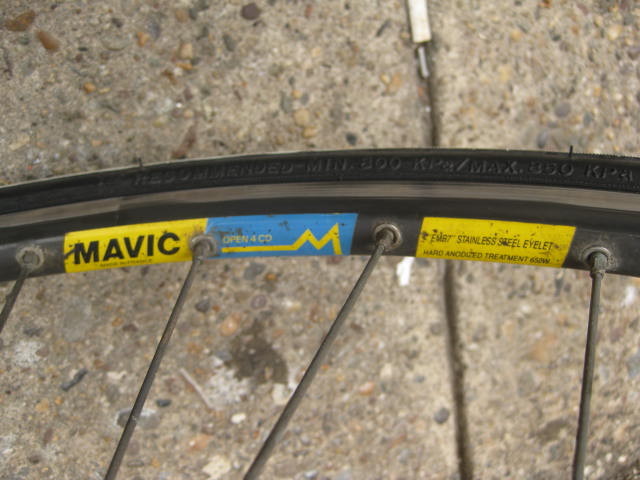 - Campagnolo low flange record hubs 36 hole, laced to dark ano. Mavic Open 4 CD rims.