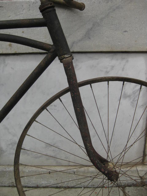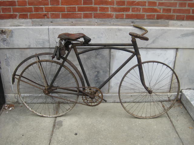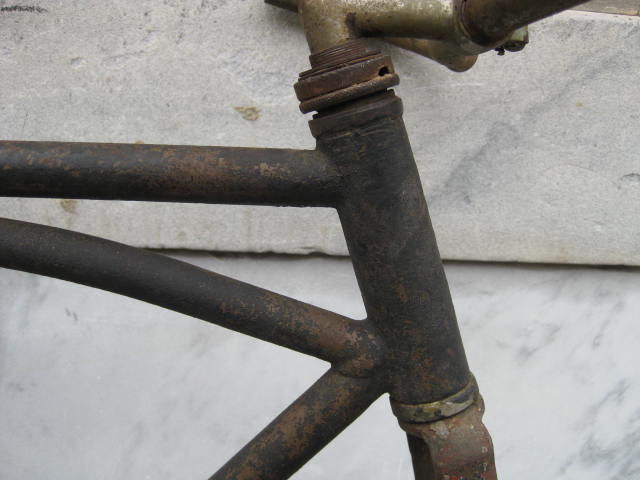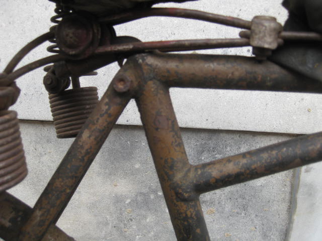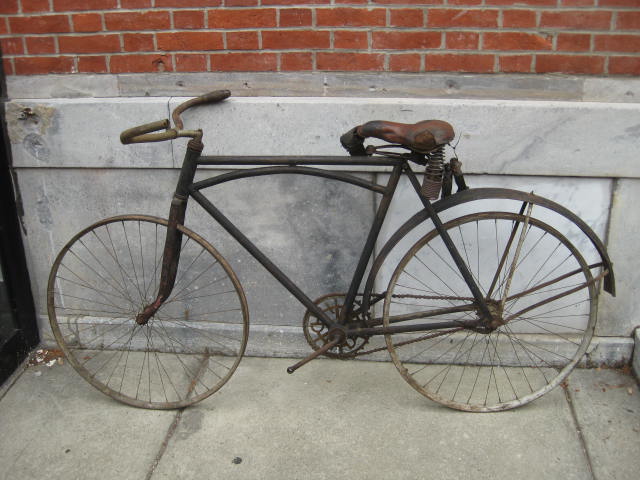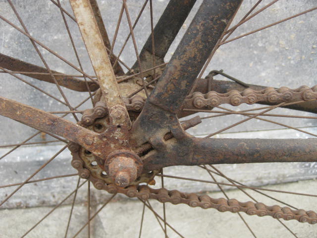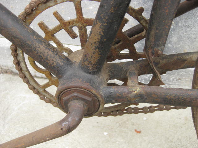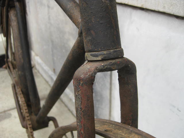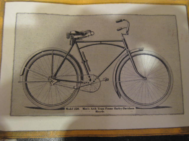 This is a pretty unique bicycle we acquired over the summer. We thought it was a Harley Davidson model # 220. It has the HD chain ring and the arched top tube. Upon closer inspection and with the help of a collector, it turns out it may not be so. The fork crown is different and the rear brake bridge is straight, not arched. Also, the way the arched tube joins the seat tube is not quite right. We definately want to know more! If you can shed some light on these inconsistencies, I am all ears.