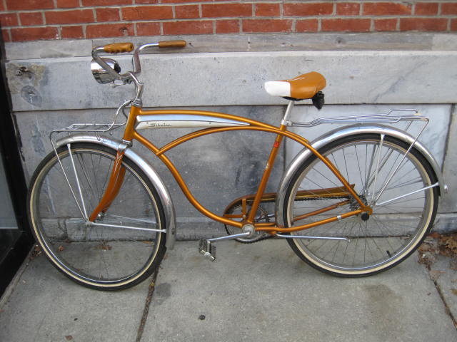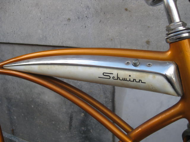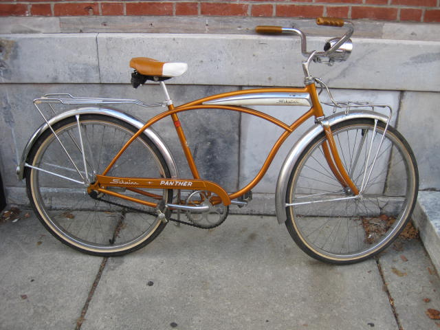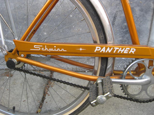 This is a really clean 1954 Schwinn Panther we recently sold. All original paint, tires, racks, tank, and saddle. Stunning radiant Coppertone color. Not a scratch on it! The bike looks as if it was purchased, rode around the block and hung up in the garage never to be touched again. This is a rare time capsule piece. Enjoy the photos.