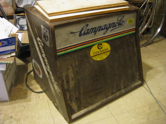 Finally dug out this super cool Campagnolo parts cabinet that needs some work. Share this: Share on Facebook (Opens in new window) Facebook Share on X (Opens in new window) X Email a link to a friend (Opens in new window) Email Like Loading...