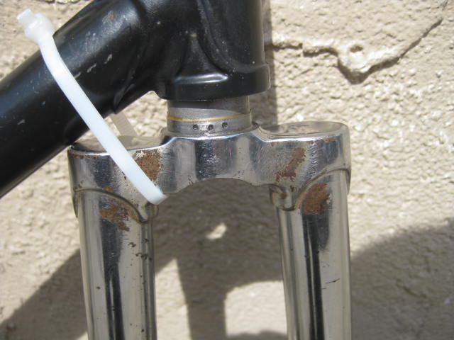 All that being said, it is a still a nicely constructed bike! It has Campagnolo track drop outs and fork tips and the fork crown and rear bridge are NOT drilled for brakes. The fork is biult with nice beefy round blades and classic flat fork crown. there is a Columbus stamp on the steerer, so I assume the rest of the tubing is Columbus as well. The bottom bracket is English threaded as well as the steerer.