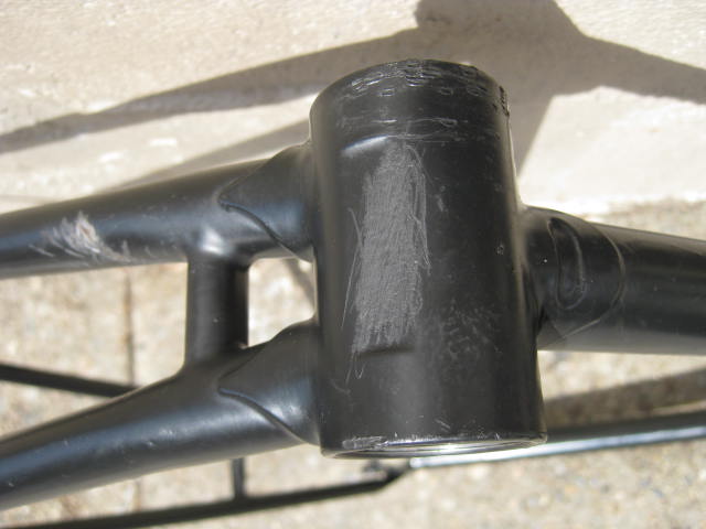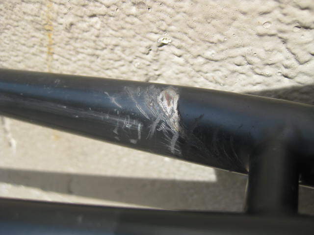 There are two dents in the top tube, small one on the non drive side and a litlle bit larger one on the drive side, not bad about the size of a dime (see photos).