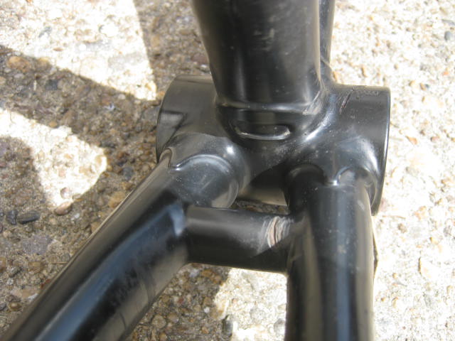 There are two dents in the top tube, small one on the non drive side and a litlle bit larger one on the drive side, not bad about the size of a dime (see photos).