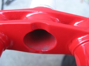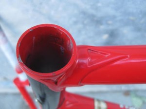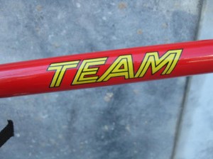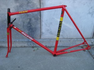 Offered for sale today is a beautiful classic track frame and fork. It is a Raleigh TI (tube investments) Team pista / track frame and fork in fantastic condition. This has been re-painted and decaled at some point in its life. It is one of the better re-paints I have seen in a while. The color is a bit more orange than the original color. All correct decals. Made from Reynolds 531 tubing. Serial number is SB4394 on the BB shell with size 58.5 stamped there as well. There is also a matching stamp on the steerer. This frame was made in Raleigh’s Ilkeston factory in roughly 1980 going by the decals, lack of chrome and un-drilled rear drop outs. It has the classic Raleigh pista fork crown and is undrilled for brakes. Campagnolo rear track ends and fork tips as well, which was standard equipment for these bikes. The frame also has nice round fork blades and beefy rear seat stays , very stiff. English threaded BB shell, English steerer, and takes 27.2 seat post size. Measurements are as follows:
